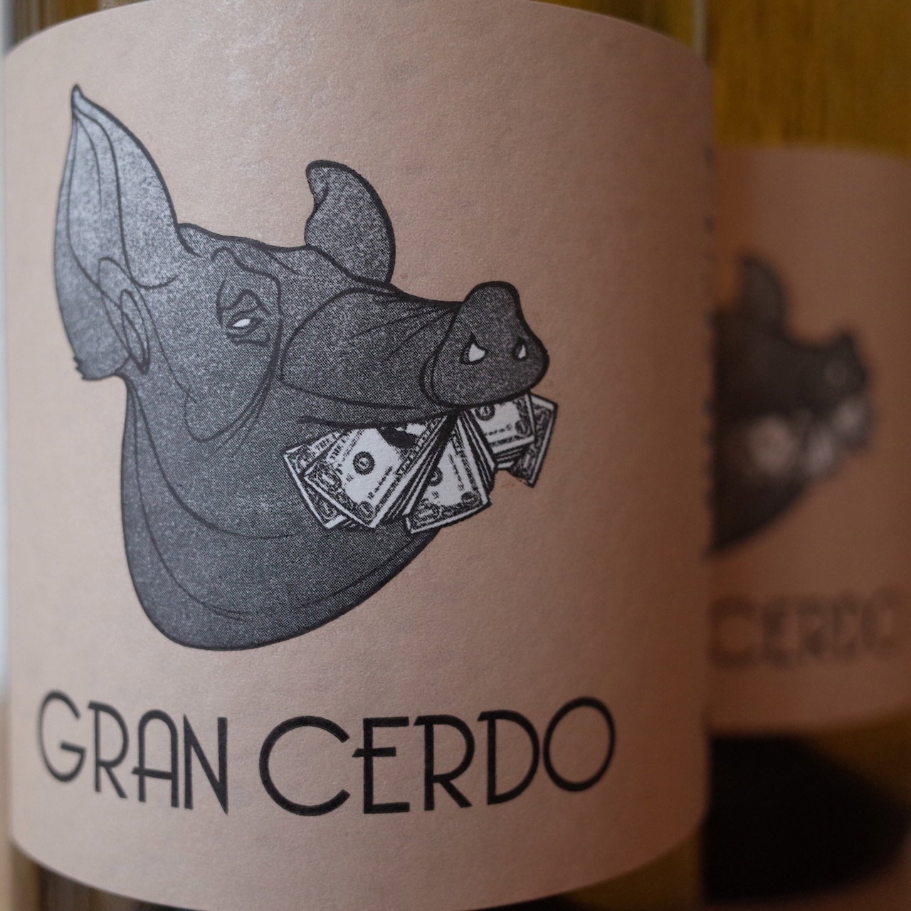 Hij presenteerde één wijn. Gran Cerdo. Varken!!!!!